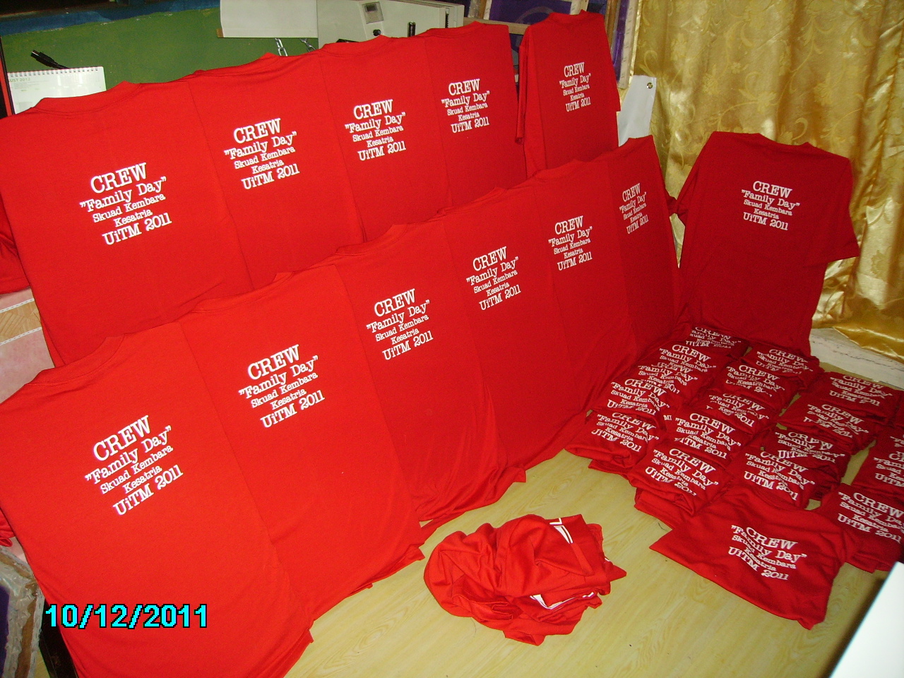 Hari ni nak kongsi cerita ngan korang semua memang hari ni dalam sejarah le. Nak dijadikan cerita, hari ni 15/12/2011 kitaorang satu family dah planning nak balik kampung kat Terengganu. Nak dijadikan cerita jugak, kitaorang kena siapkan tempahan tshirt untuk 4 customer kitaorang sekaligus.
