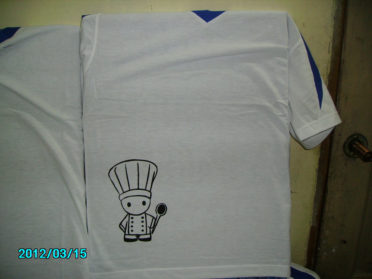 Ada jugak baju catering yang order ngan kitaorang…diaorang pun print sempoi je. Kartun kat depan & nama kat lengan.