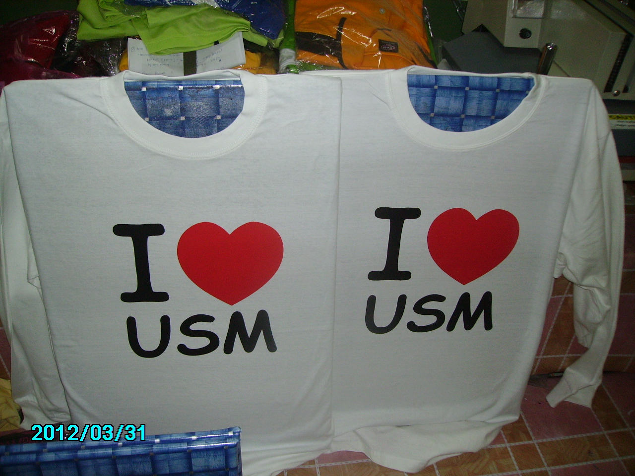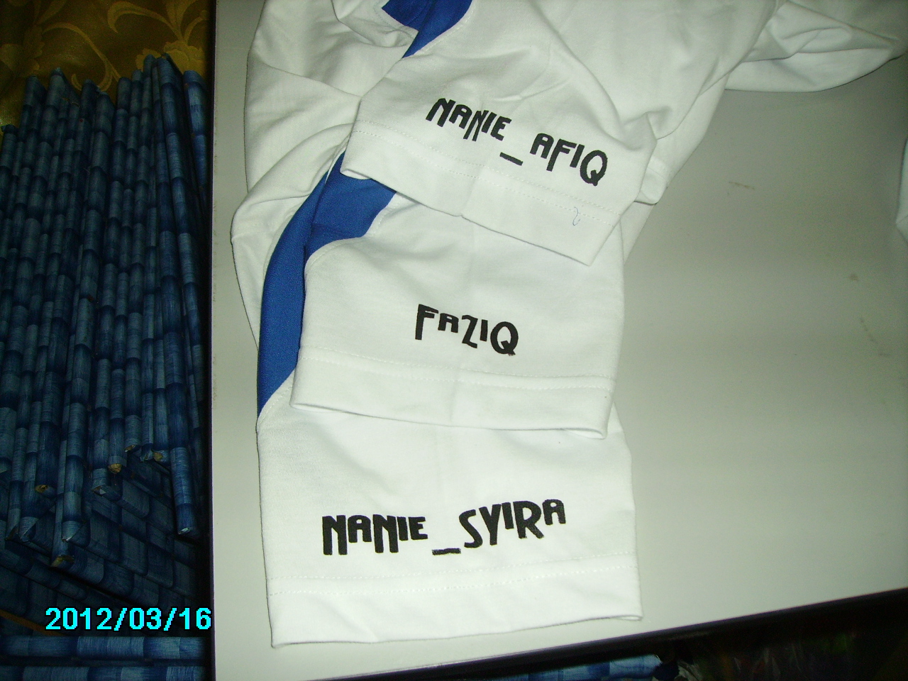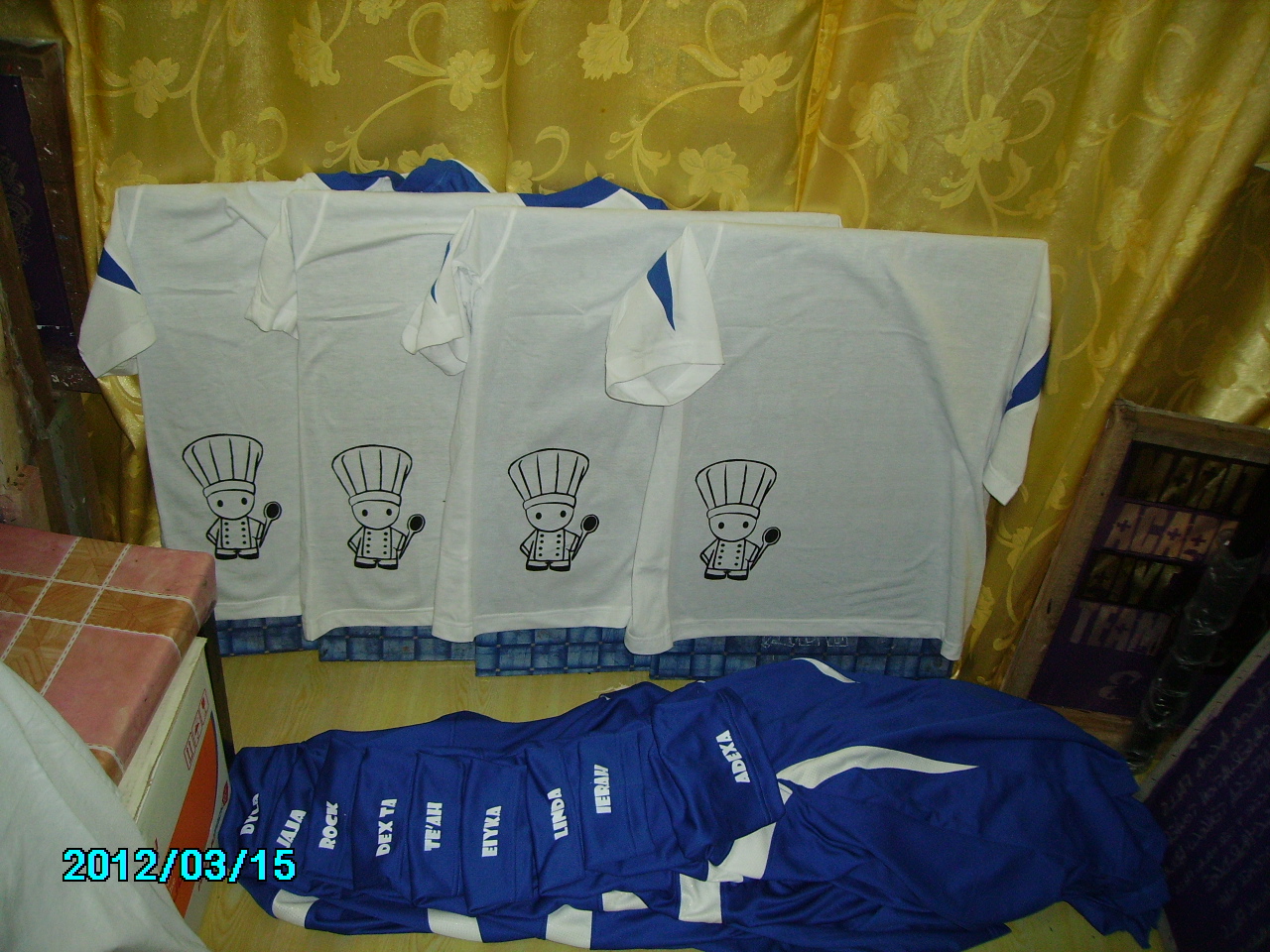 Yang ini macam biasa, baju ala2 jersi gitu. Baju jenis cotton tapi diaorang nak ada nombor kat belakang. Rasanya baju penyokong ni. Penyokong team handball. Design semua diaorang bagi…saya cuma print jer. Cepat skit siap.