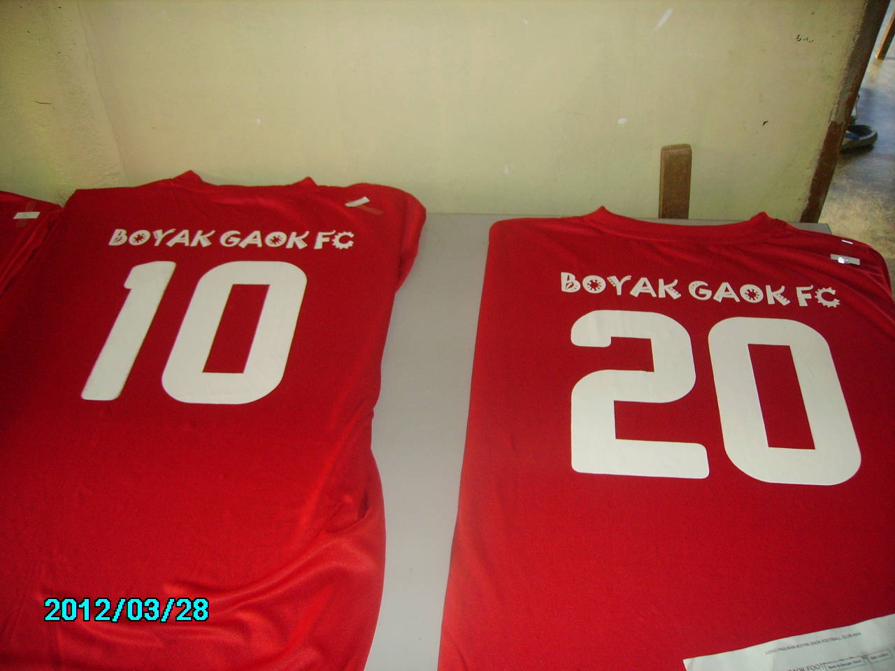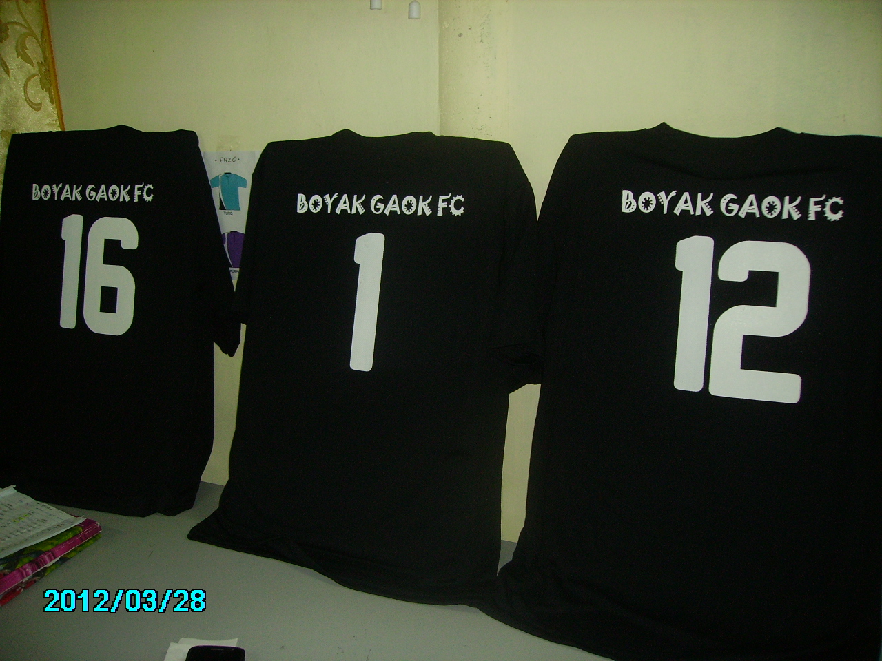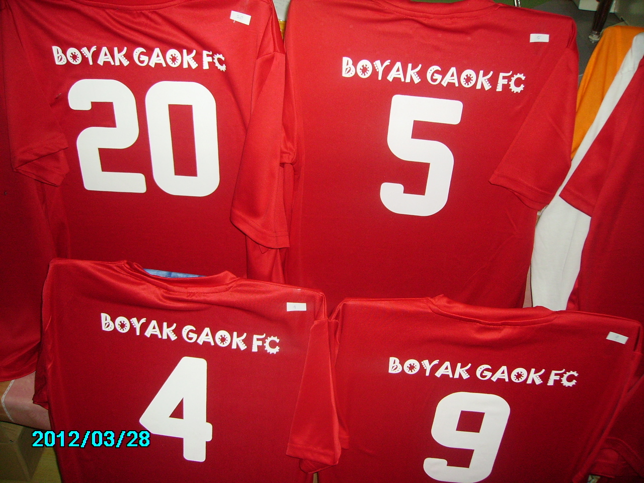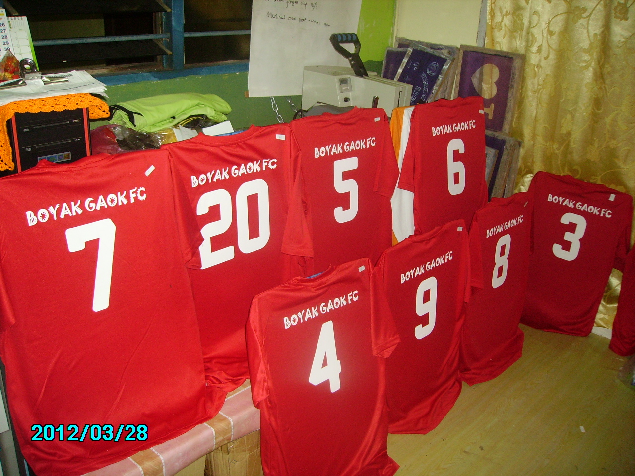 Ini plak, kisah baju bola dari Sabah bah. Baju jersi yang diaorang tempah, siap ada logo group diaorang, tulisan depan, tulisan belakang & nombor jersi. Cam kat bawah ni….