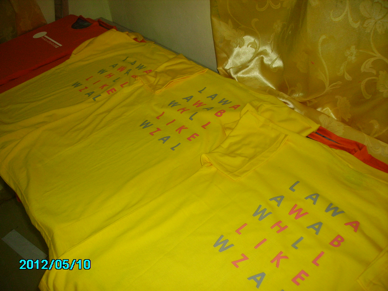 Yang baju kelas tu, customer mintak designkan nama student dalam bentuk nama kelas. So, jadi le nama budak2 kelas tu dalam bentuk 5Z. Kalau dari jauh nampak le kelas 5Z tu. Kreatif gak diaorang ni ye. Bawah ni ada lagi baju2 yang sedang dijemur tu…