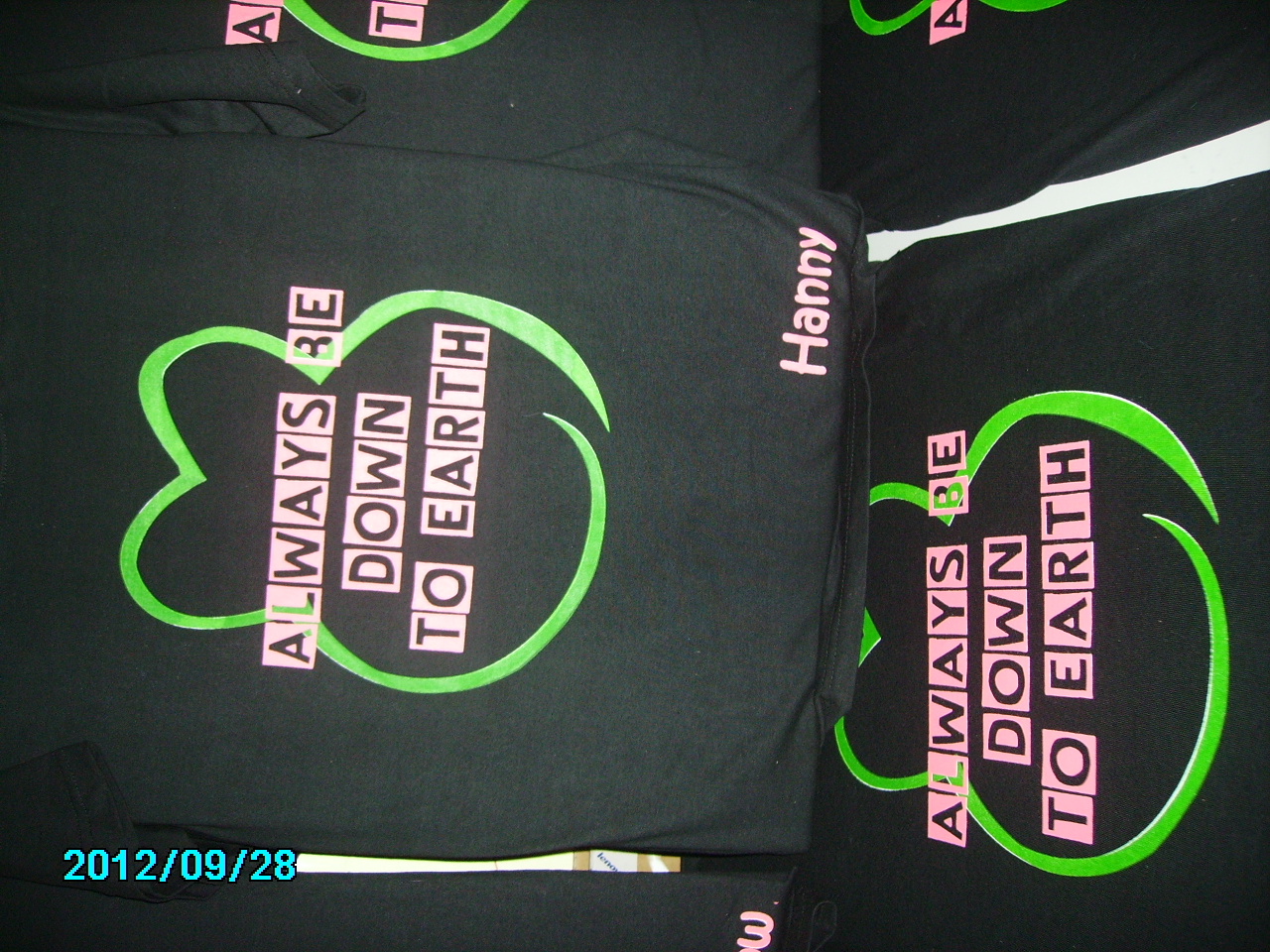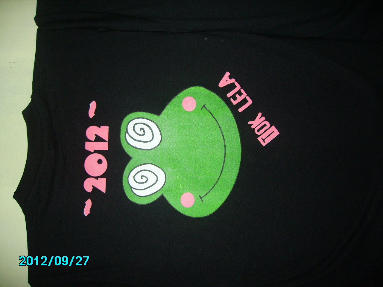 Ini gambar baju belakang lak ni. Diaorang mintak buat 2 kaler. Kaler pink ngan hijau lime green. Apa2 pun saya kena tindih putih dulu sebelum tindih kaler lain tu untuk bagi naik dia punya kaler.