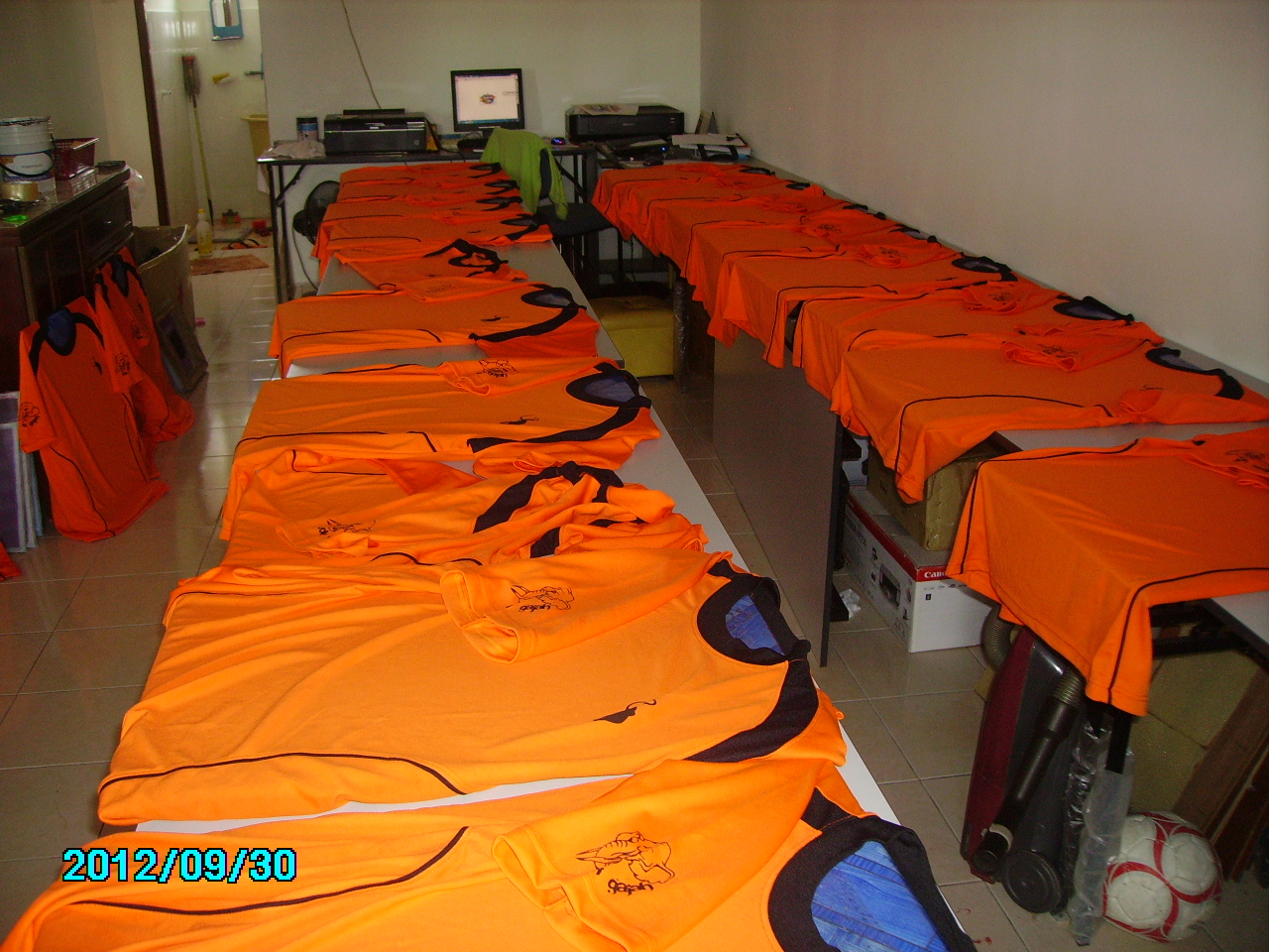 Sekarang ni saya ada satu mesin heat press khas untuk baju jersi warna putih je. Untuk warna lain, saya memang tak boleh ambik. So, sape2 yang nak buat baju camtu, korang boleh emelkan design kat saya. Nanti saya bagi harga nanti.