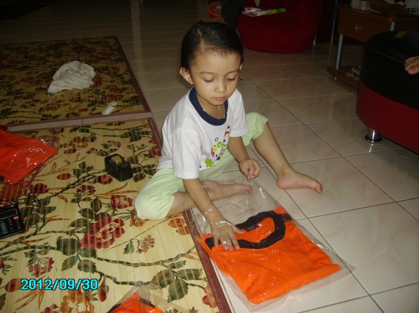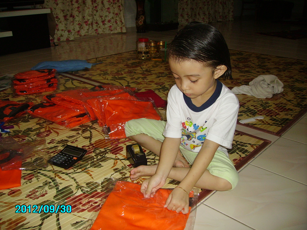 Ok..ini lak bukan cerita pasal baju tapi nak tunjuk kat korang bakat terpendam seorang pekerja cilik yang sedang berusaha & bertungkus lumus untuk melipat & memasukkan baju ke dalam plastik. Lihatlah kepada kesungguhan pekerja cilik ni…..