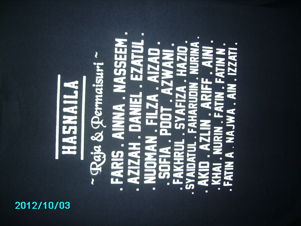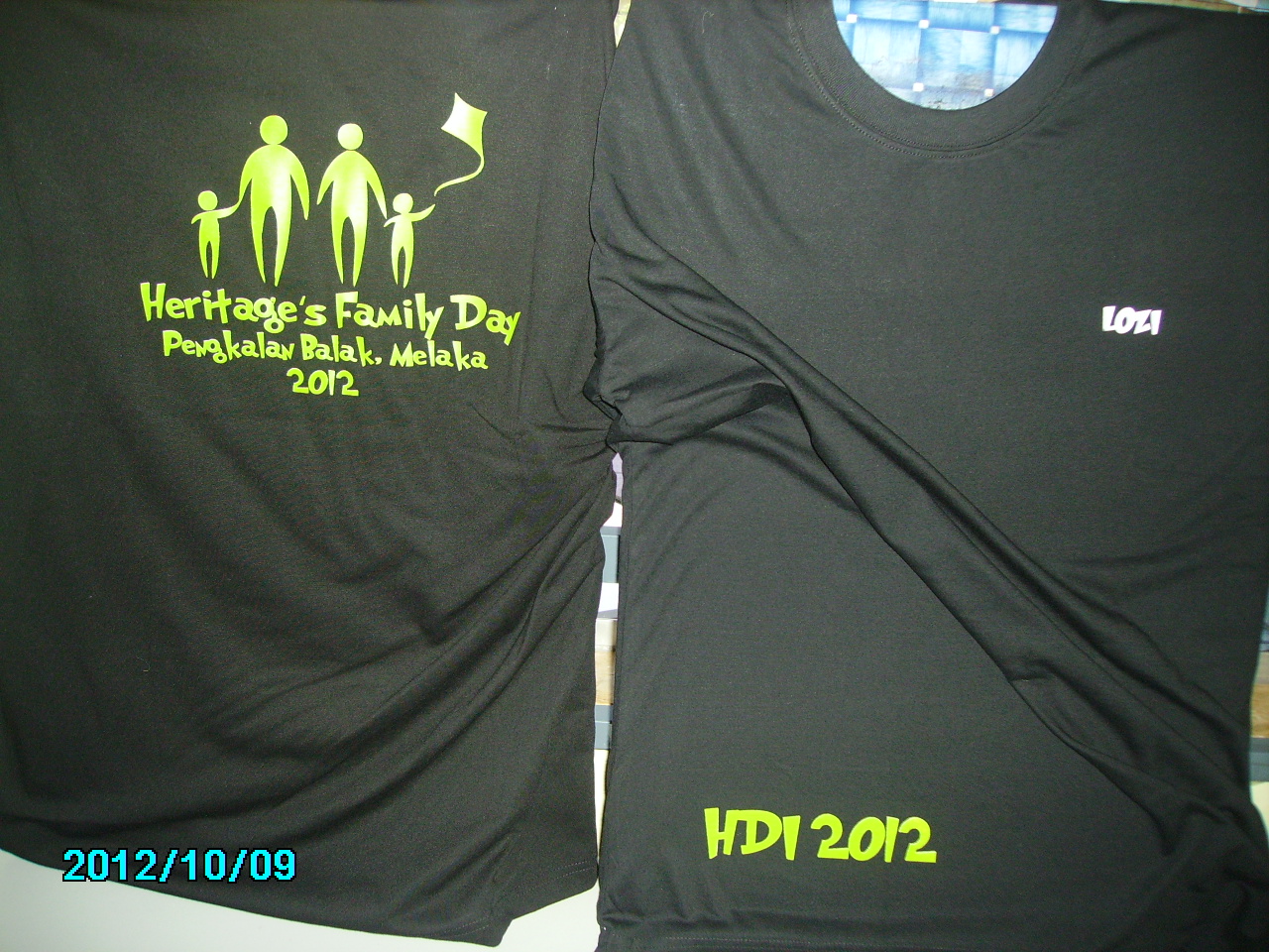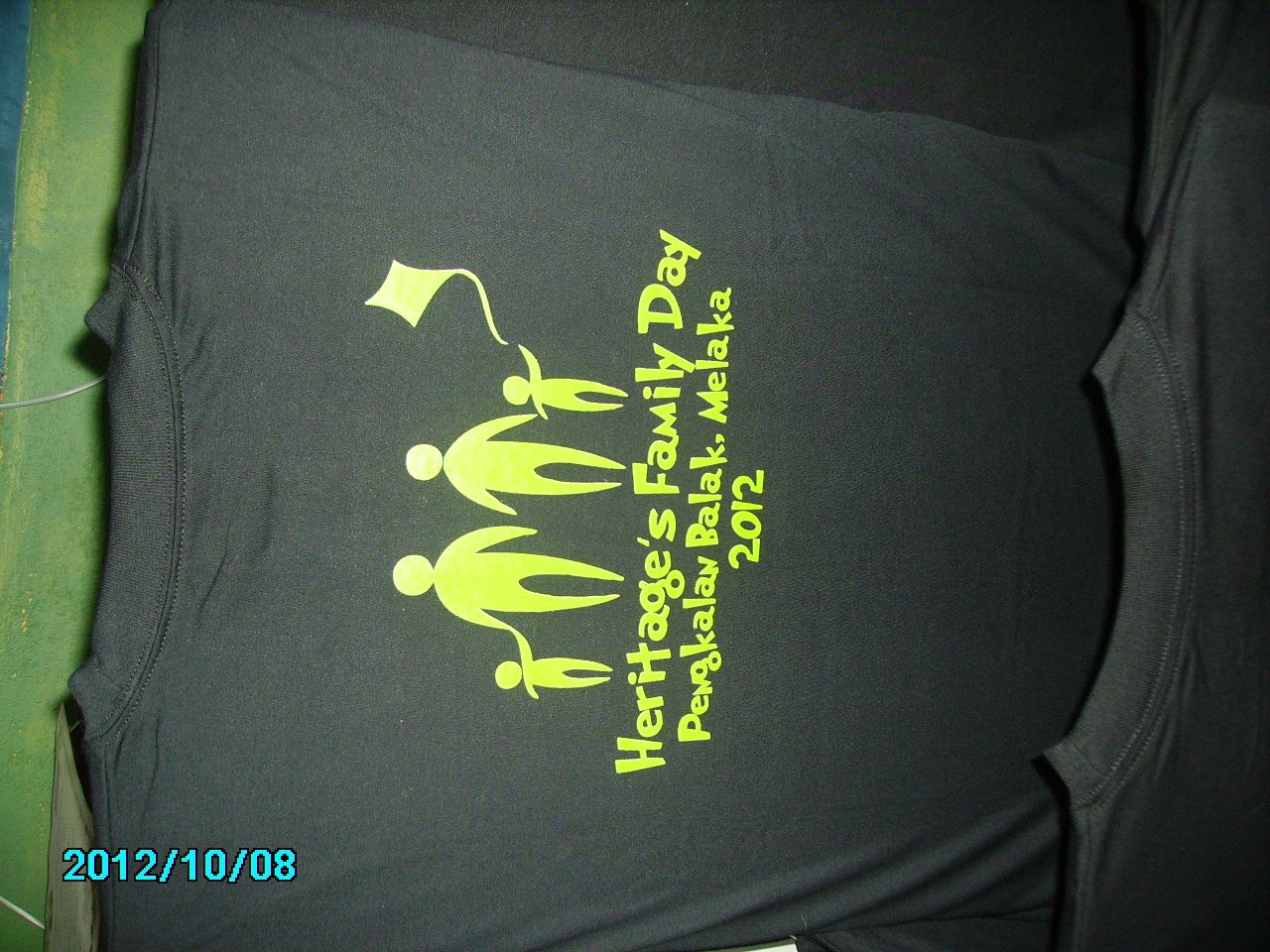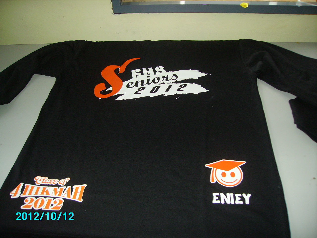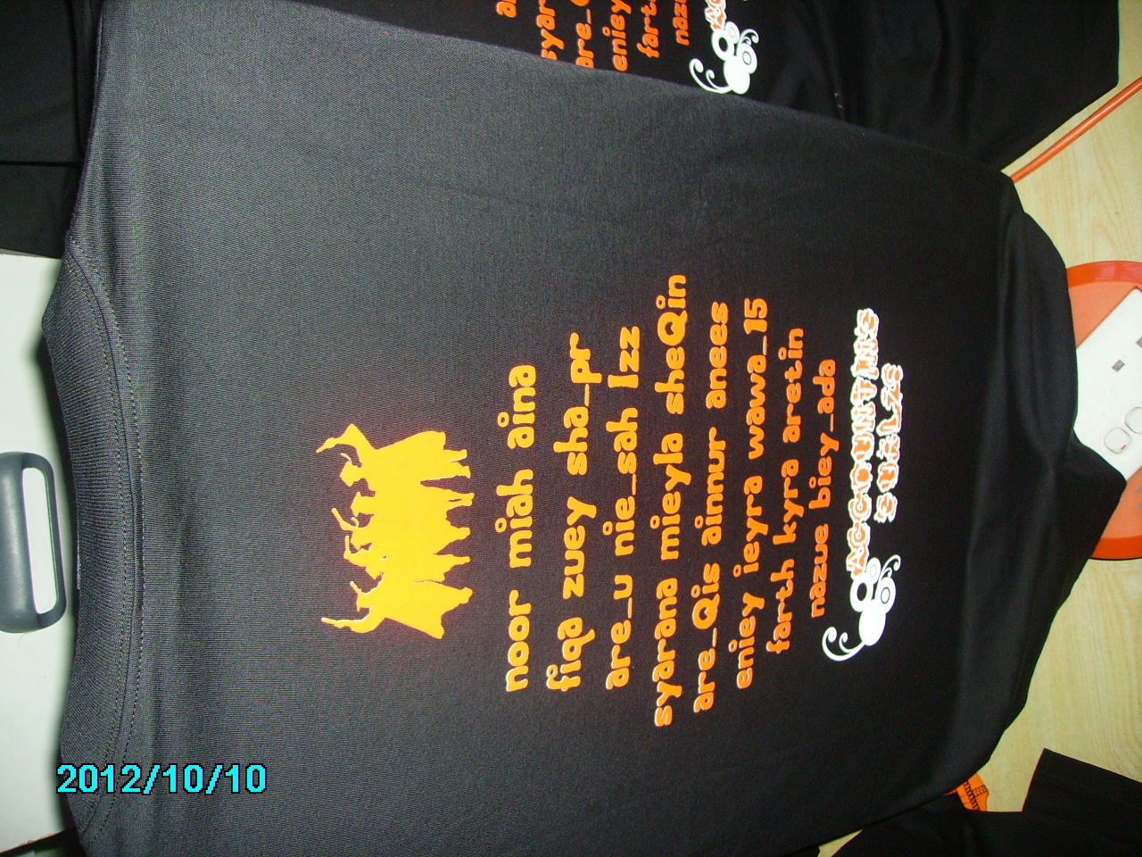 Baju ni pun sempoi je. Depan 1 kaler & belakang pun 1 kaler. Yang lambat skit, time nak buat design dia. Tu yang lambat tu. Dah siap, cepat je print.