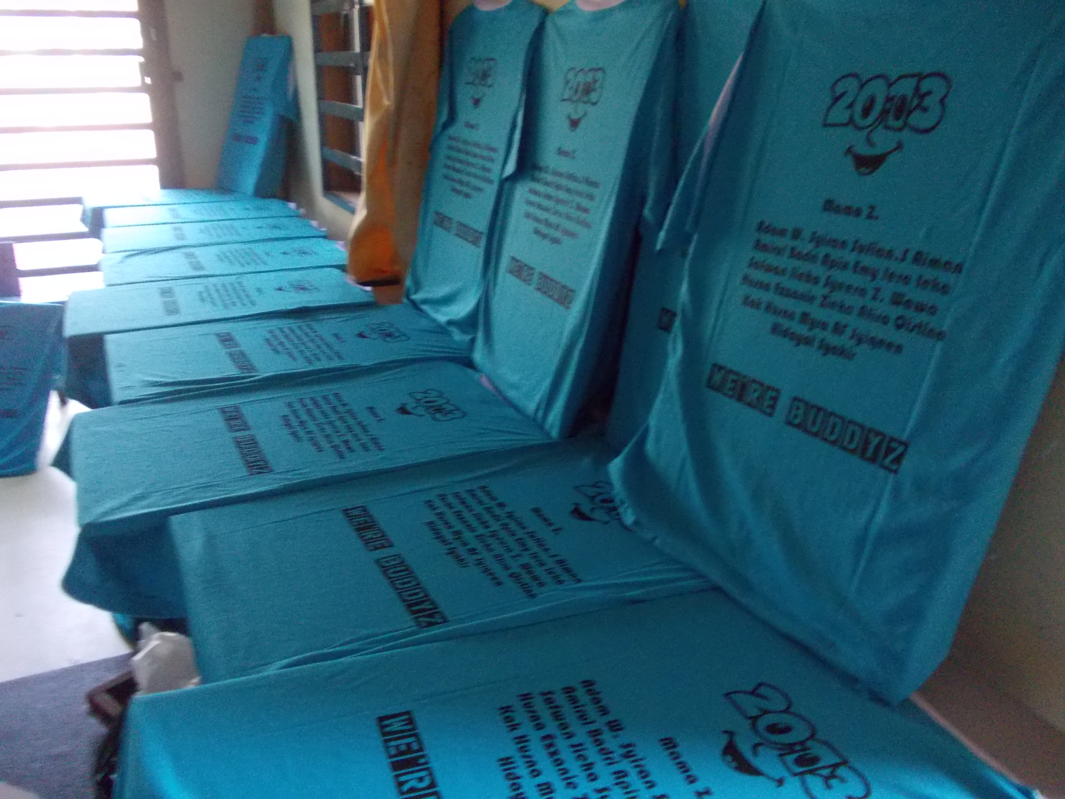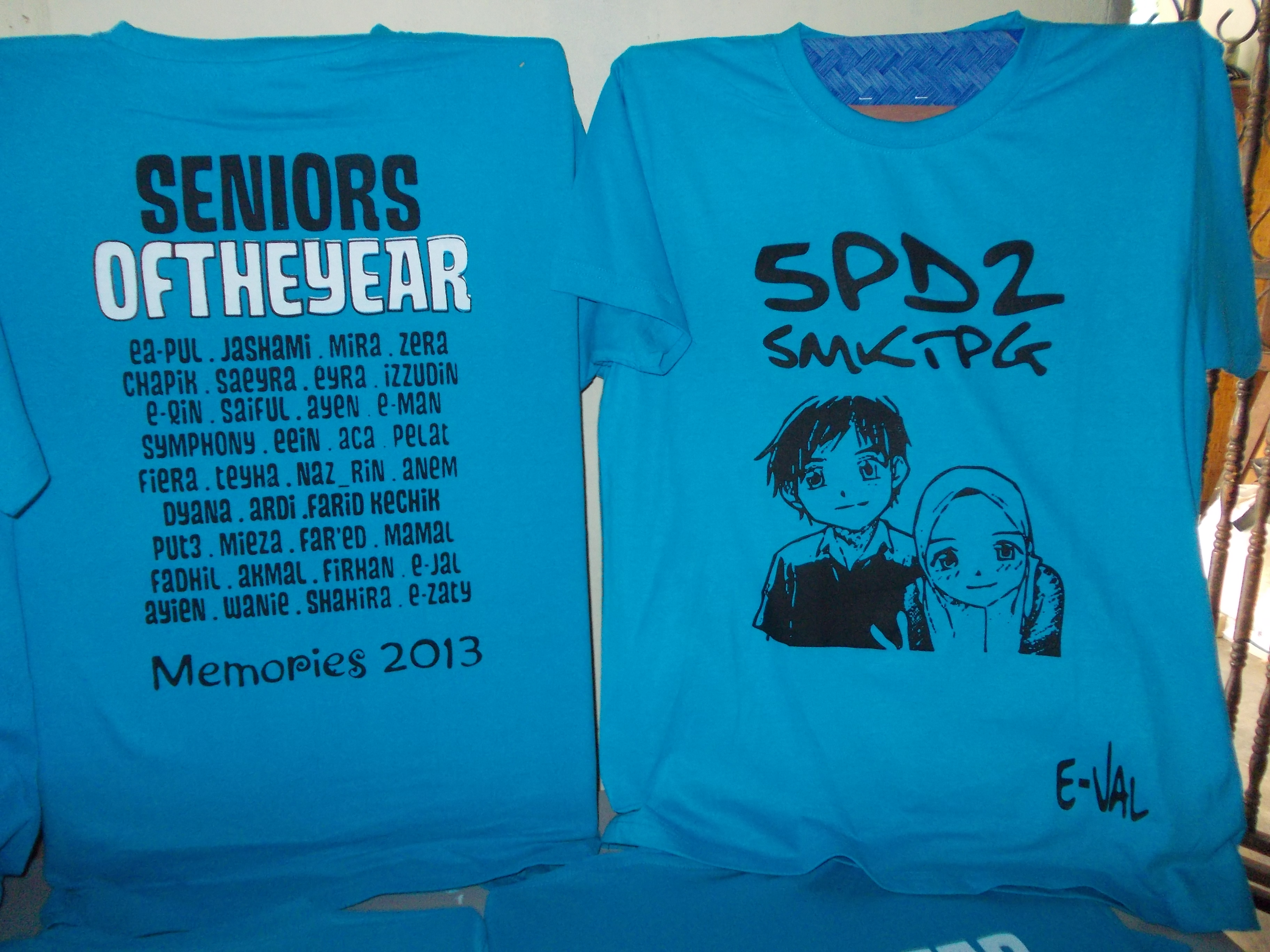Lagi tshirt kelas……tapi yang ini diaorang lukis tangan je & saya lukiskan balik. Kalau camni, saya akan caj skit untuk buat design tu & biasanya saya serapkan kos atau caj buat design tu dalam harga baju diaorang.