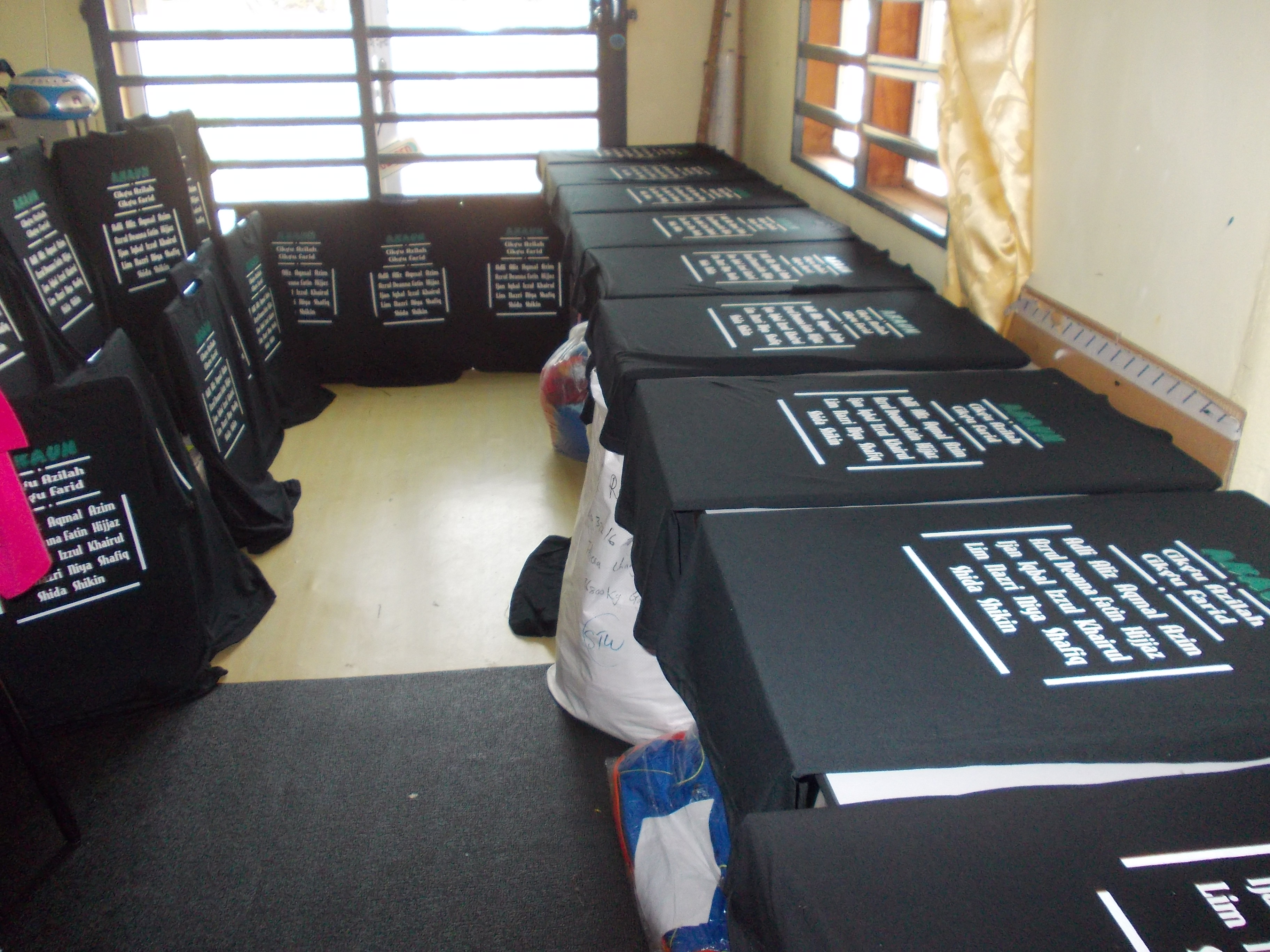 Kalau diikutkan mudah je print baju ni tapi nama soarng kat depan tu yg akan ambik masa skit tapi masih lagi mudah bagi kami nak print.