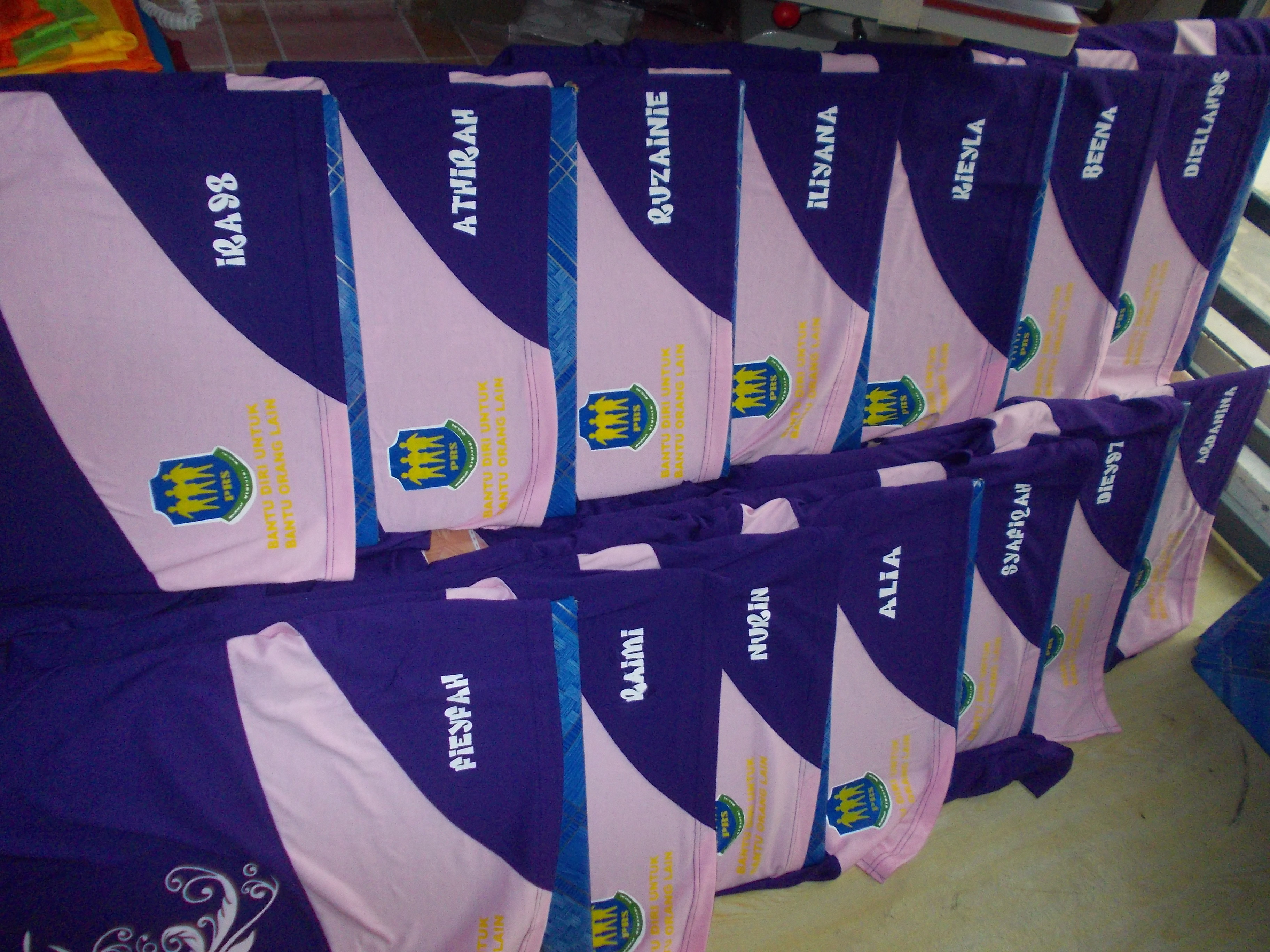 Ini design baju kelas yang biasa di print. Kadang2 nak print nama ngan nombor belakang yang ambik masa skit. Tapi kalau print hitam memang cepat.