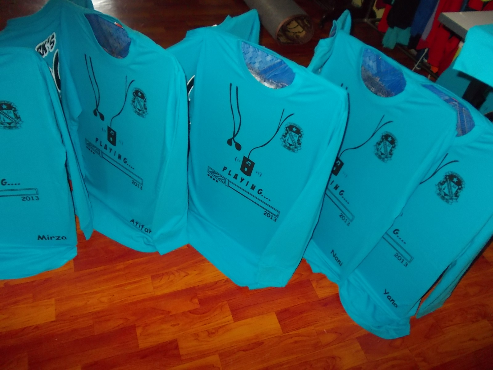 Yang ambik masa skit, bahagian belakang tu sebab ada 3 kaler kena print. Satu lagi nama….nama sorang2 pun akan ambik masa skit nak print sebab kena print ikut saiz. Tapi bila dah siap…memang puas hati.