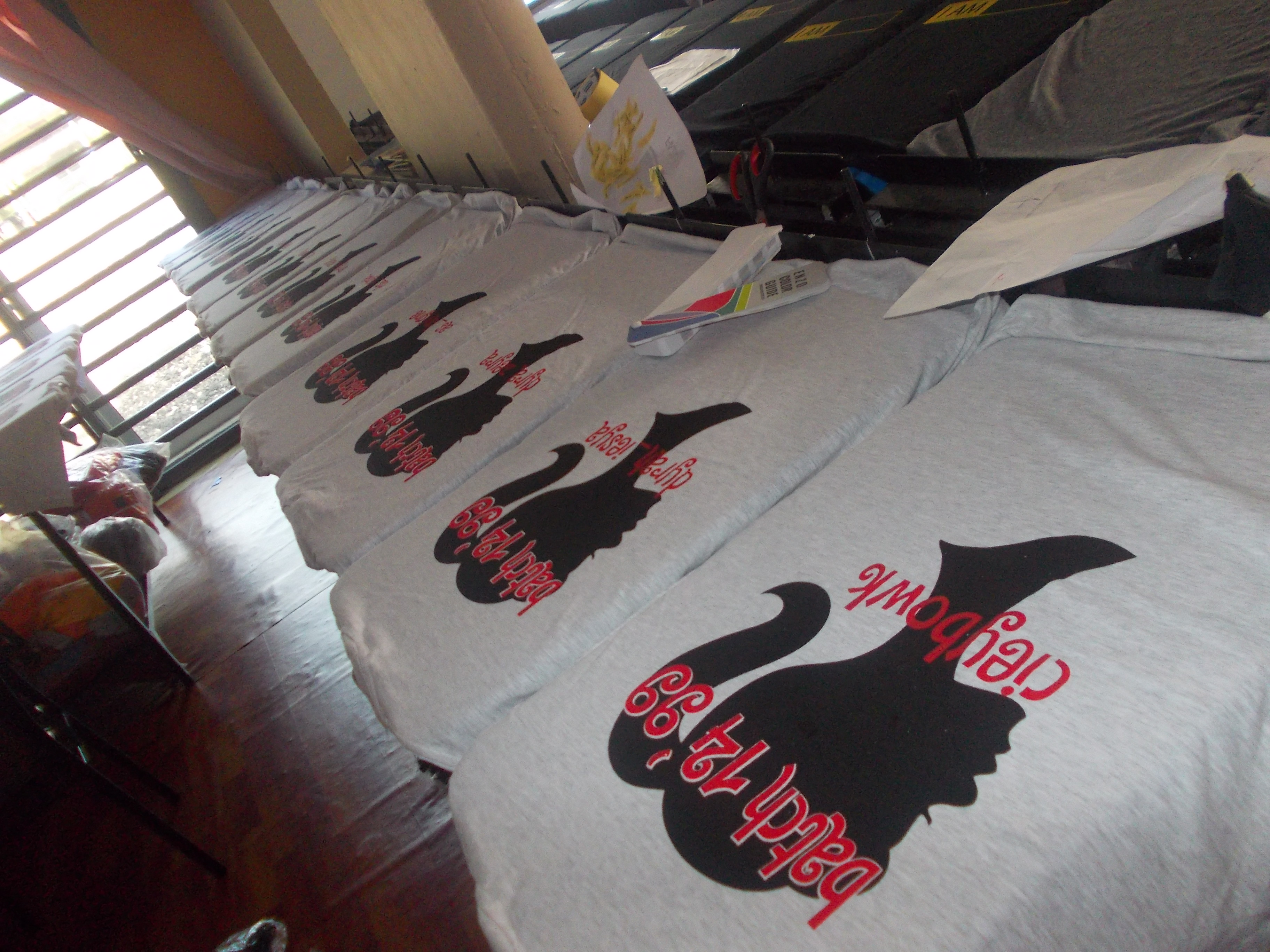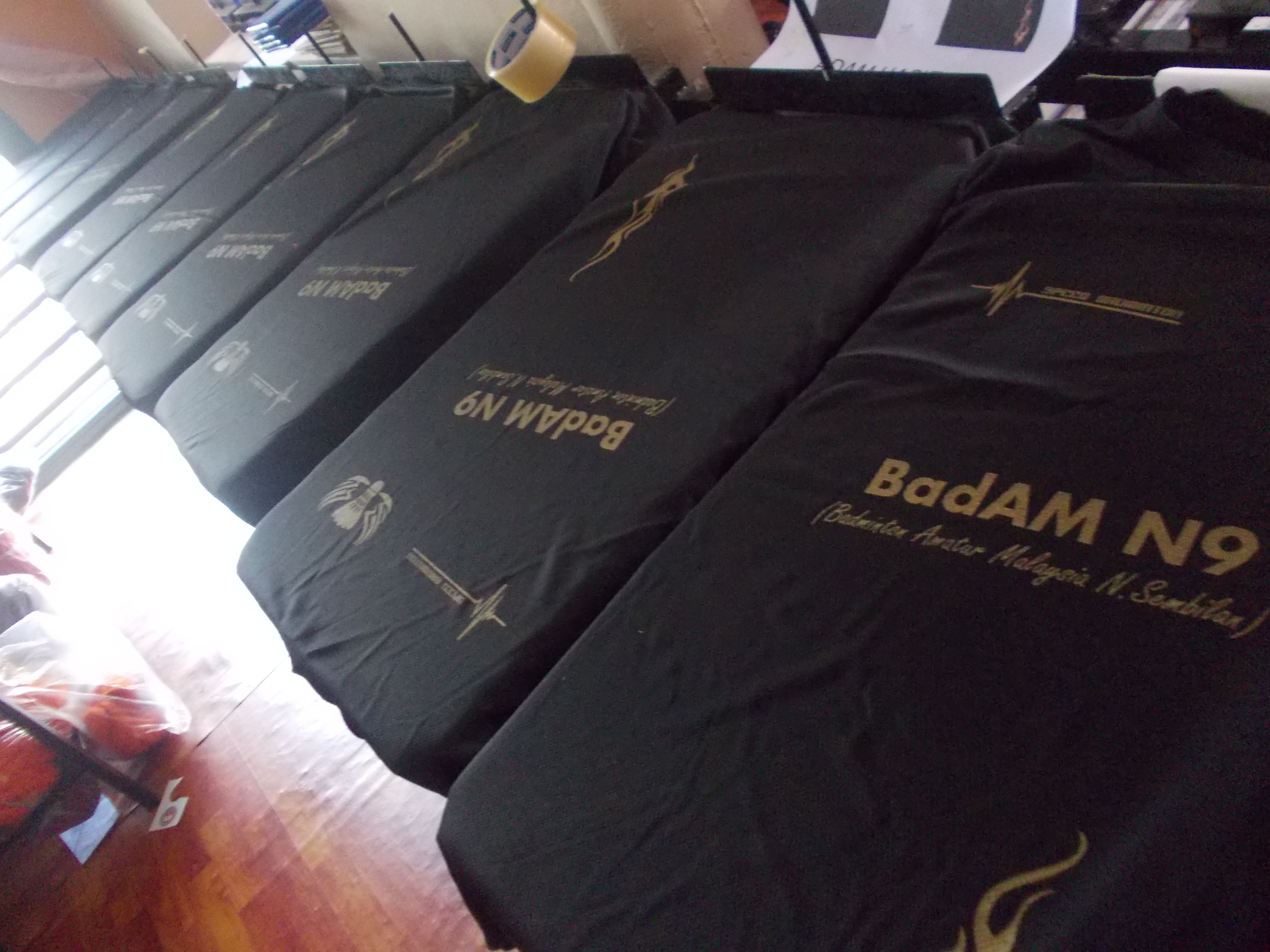 Yang ini print kaler Gold atas baju microfiber atau jersi. Kaler Gold ni mahal skit dari kaler biasa sebab dia guna powder & bancuh lain. Yang ready bancuh ada tapi kalau lama tak guna, dia berkulat. So, lagi senang beli asing2. Beli dye & powder, pastu bancuh sikit2.