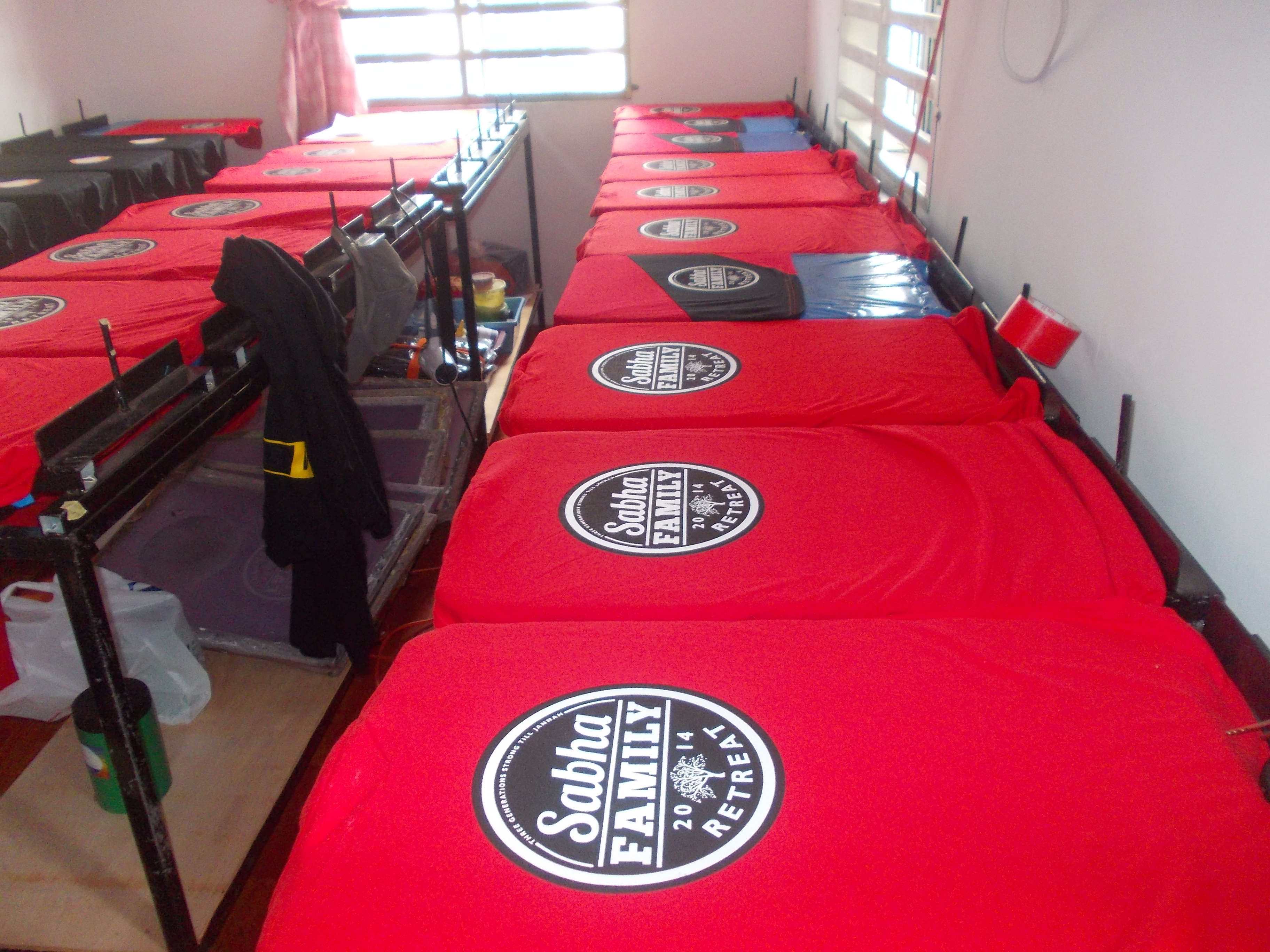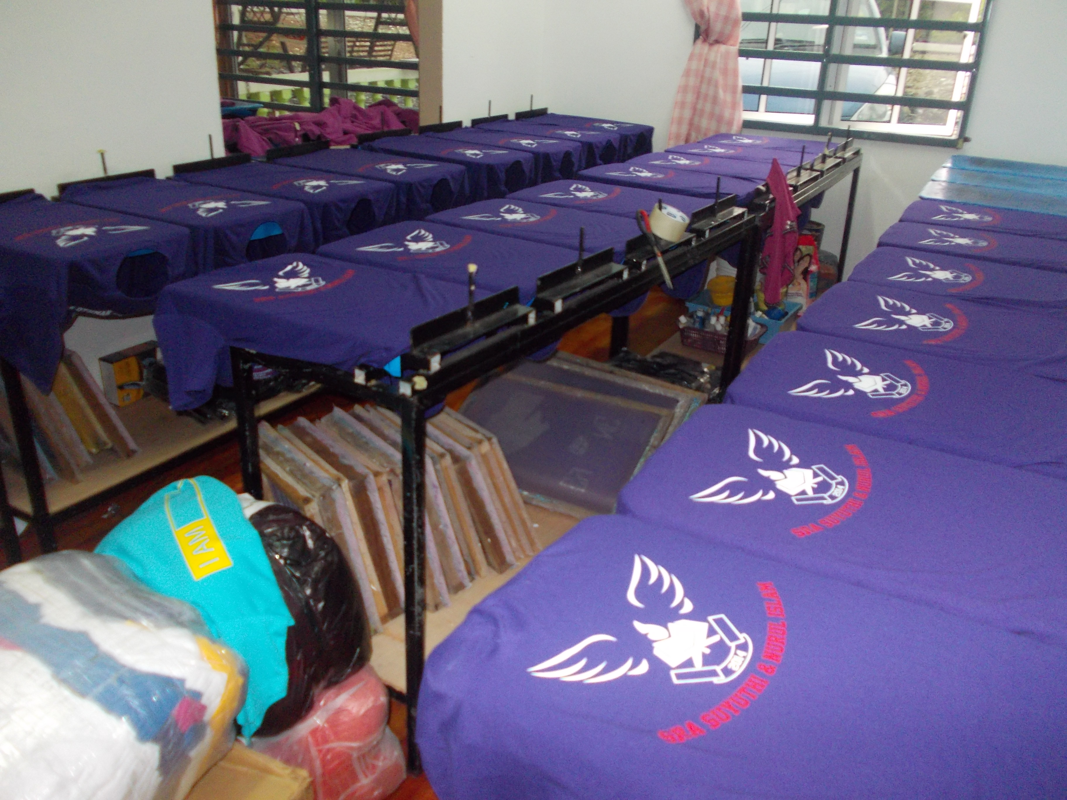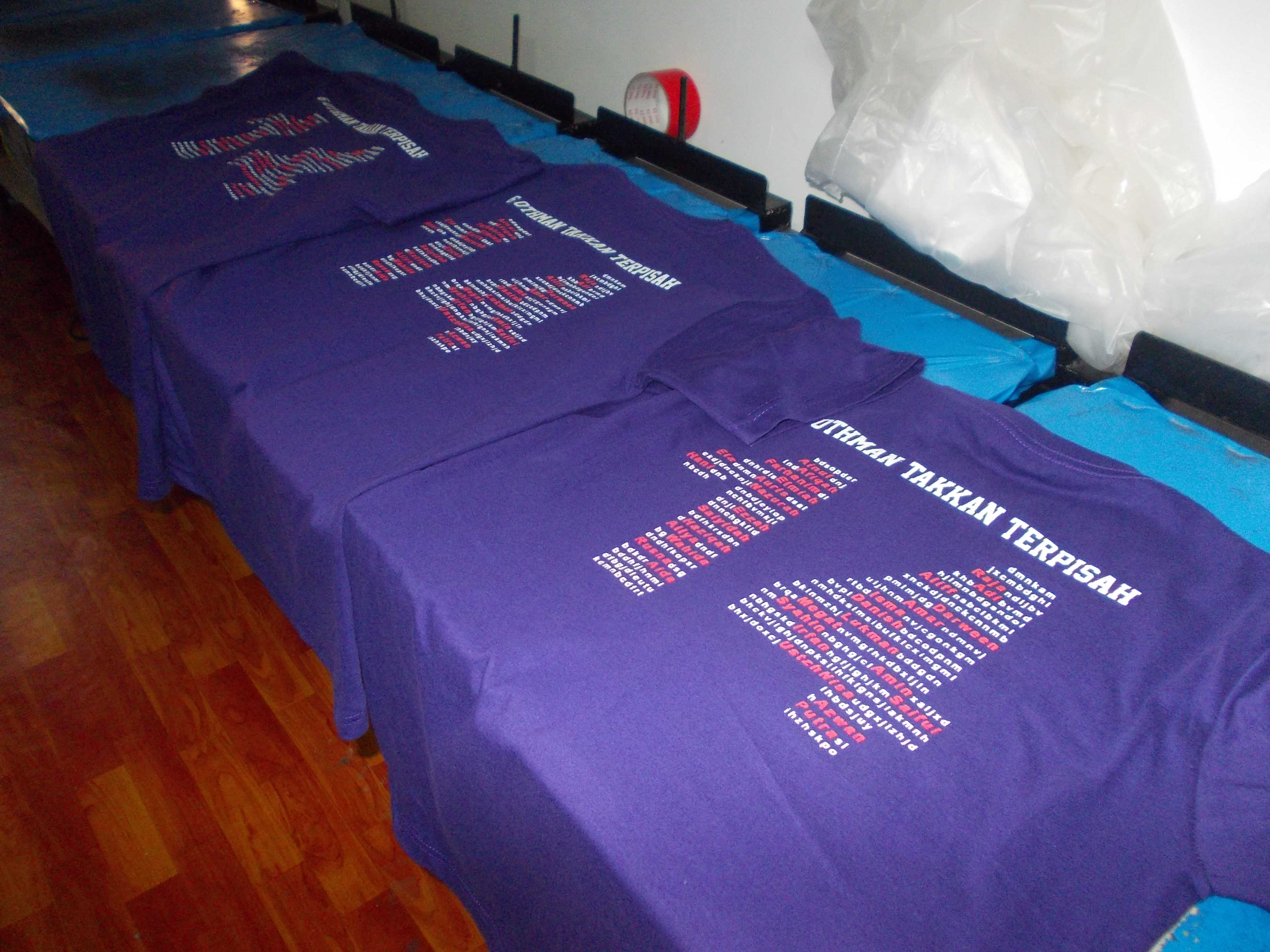 Ni baju konvoi lak ni. Depan 2 kaler, belakang & lengan. Yang ambik masa sikit nak print lengan sebab perlukan papan khas untuk print tu.