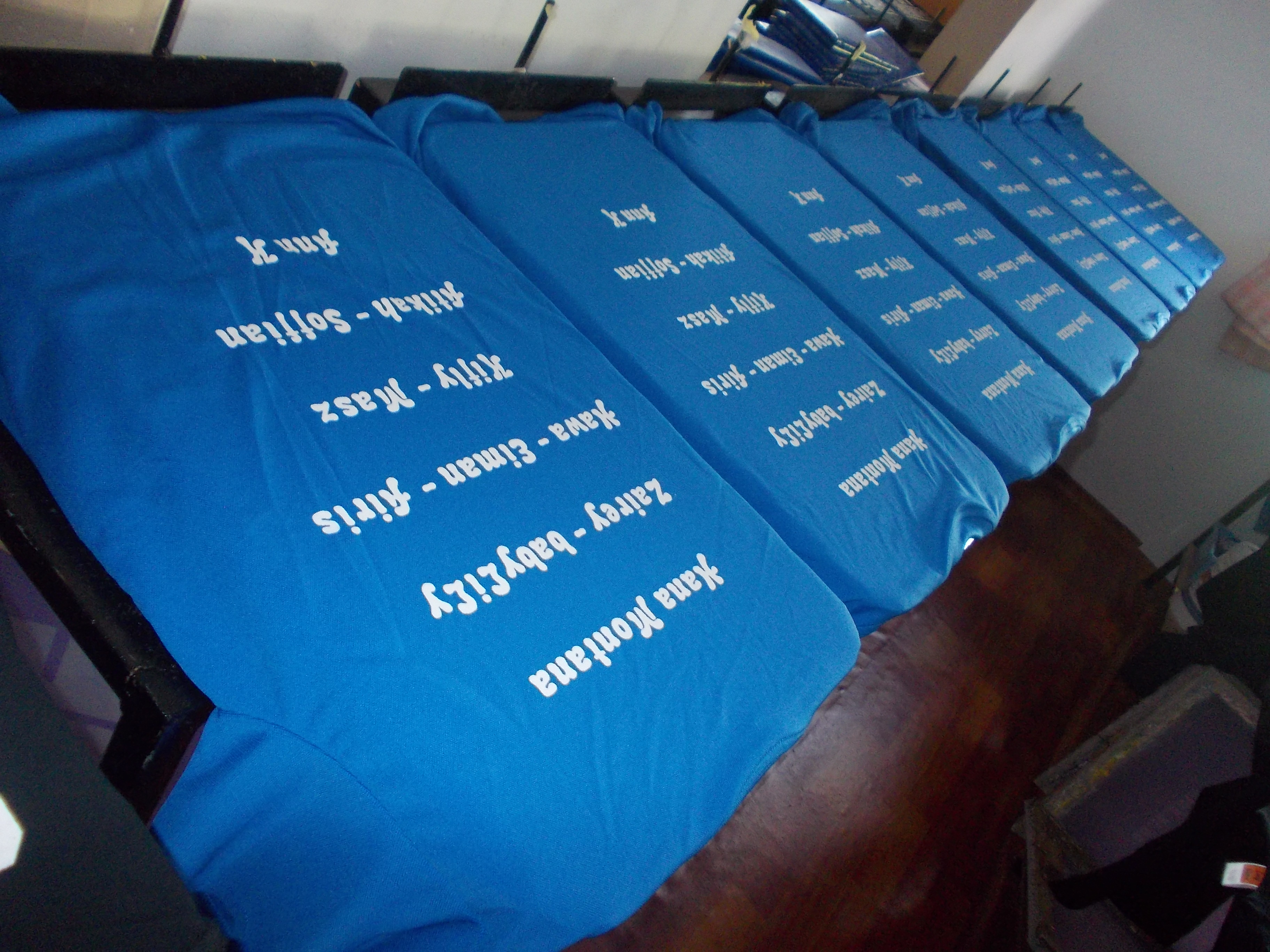 Ni antara contoh tshirt kelas yang kita siapkan baru2 ni. Customer ni buat depan belakang sebenarnya tapi lupa nak ambik gambar belakang. So, agak mudah sebab guna 2 kaler je.