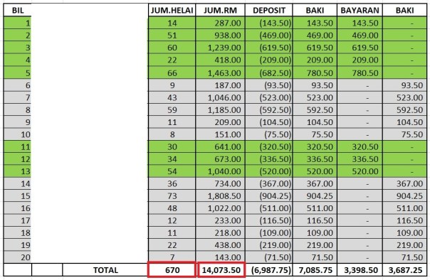 Budak ni order dalam 670 helai dengan jumlah RM14,073.50. Jumlah yang agak besar bagi seorang student.