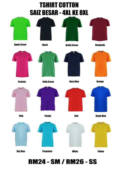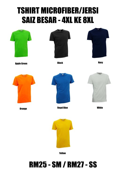 KINI KAMI SEDIAKAN TSHIRT COTTON & MICROFIBER UNTUK ORANG BERSAIZ BESAR, DARI 4XL KE 8XL.
