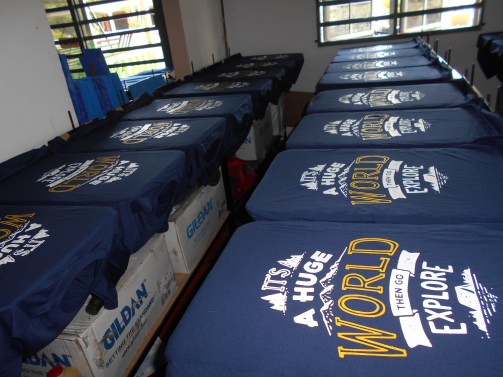 Yang ni grup nak gi bercuti ni. 2 kaler print. Biasanya grup hiking atau yang aktif bersukan ni, kitaorang suggest guna baju microfiber brand Gildan sebab baju tu sejuk & cepat serap peluh.
