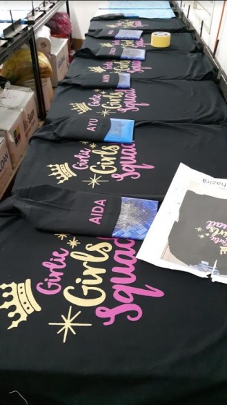 Yang ni cetak 3 warna atas baju putih. Kitaorang pakai lock masa print supaya sharp sikit masa nak print selai2 tu. Memang sempoi.