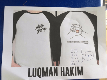 Ni antara yang saya siapkan baru2 ni. Baju raglan hitam putih….cetak 1 warna depan belakang.