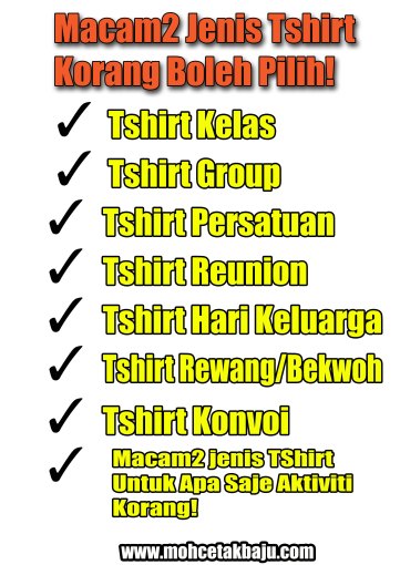 Terima kasih banyak2 le sebab sudi jenguk blog kami di http://www.mohcetakbaju.com ni ye.