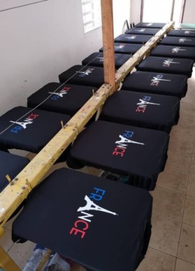 Yang ni pulak customer mintak print camni. Warna bendera Perancis…depan gambar eiffel tower.