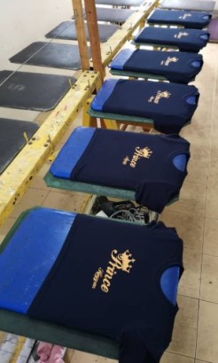 Yang ni baju syarikat…depan belakang cetak 2 warna. Belakang cetak gold putih & depan gold biru.
