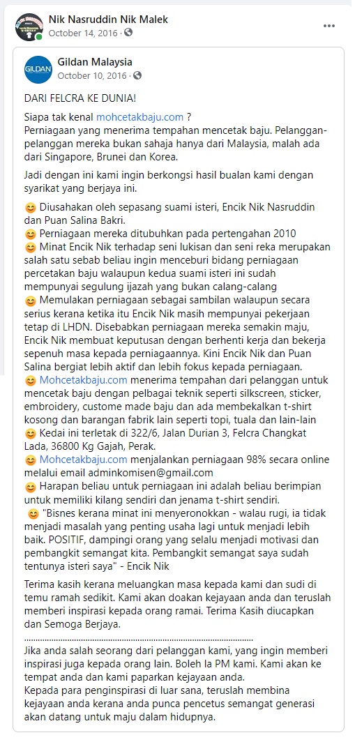 Masa Tahun 2016 sebelum ni..bos Gildan Malaysia Mr Justin ada melawat kitaorang kat tempat kitaorang.