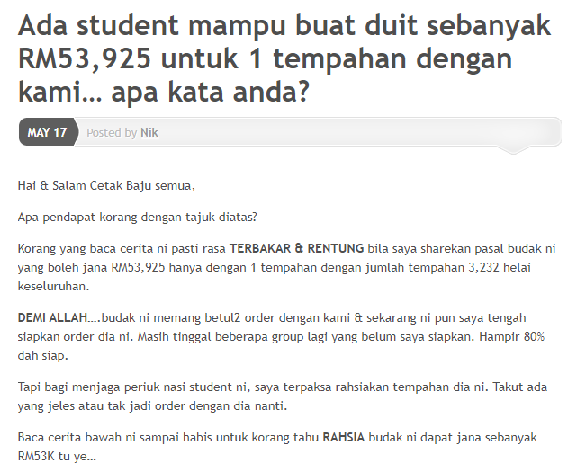 Senang2 je dia buat duit tanpa pening2 nak pikirkan camane nak print & pos baju tu.