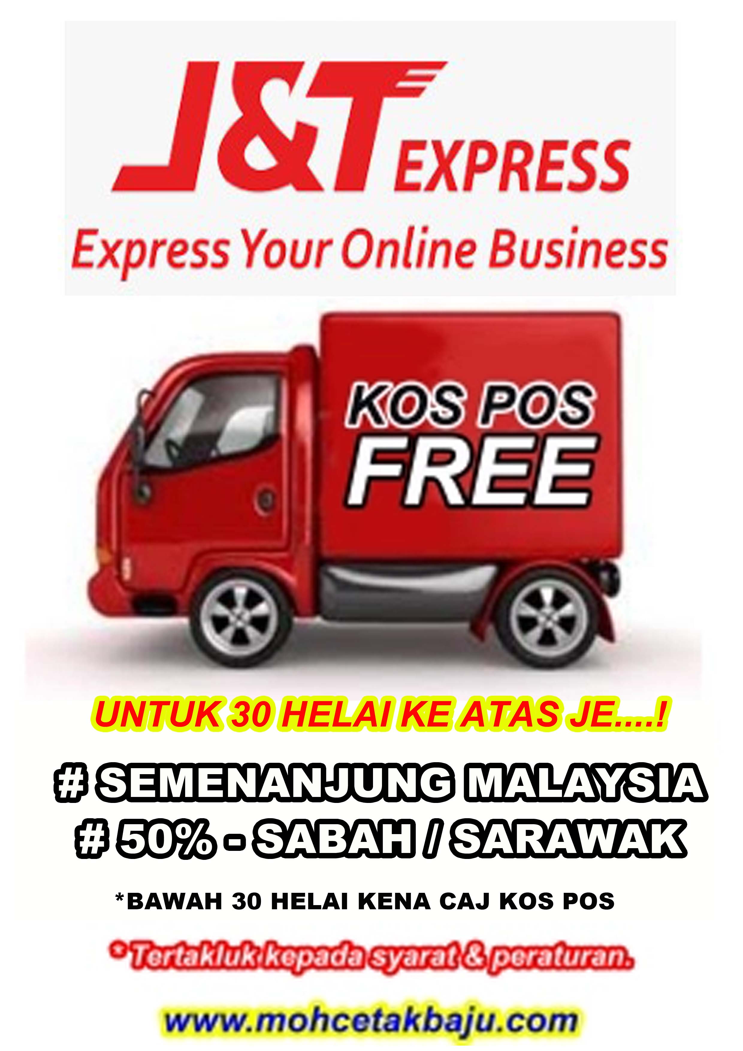 Cumanya untuk pos tu, kalau 30 helai ke atas baru kitaorang bagi postage FREE untuk Semenanjung Malaysia.