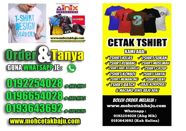 Kalau rasa ada sape2 nak tempah TShirt untuk apa sahaja aktiviti korang, kontek je kitaorang kat Whatsapp kami je cam bawah…