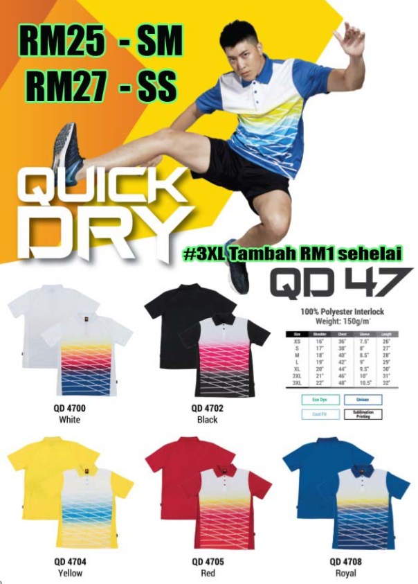 Untuk baju jenis Quickdry & Microfiber, korang boleh klik kat link bawah ni untuk tengok design2 baju lain dengan lebih detail ye.