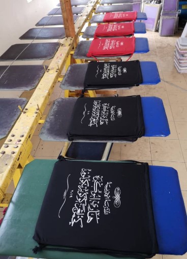Yang ni kitaorang bukan cetak atas baju ye…yang ni cetak atas beg galas.