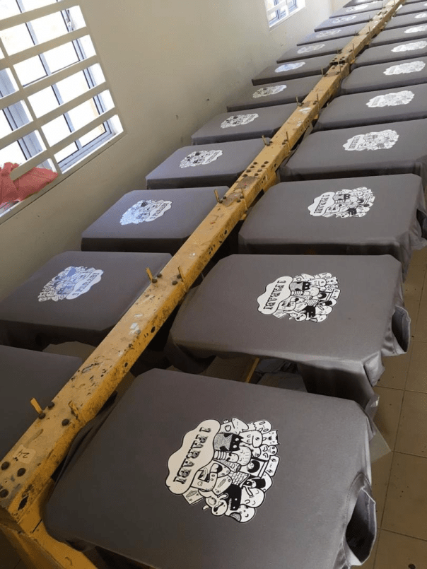 Biasanya untuk harga yang lebih murah…kitaorang suggest guna cetakan jenis silkscreen printing.