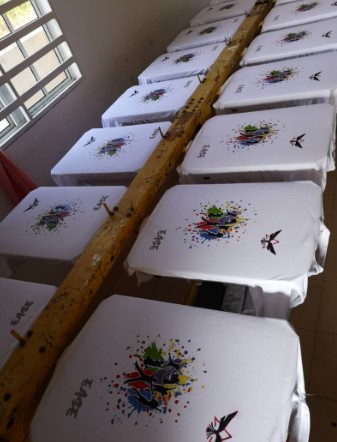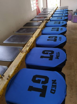 Tapi kitaorang guna silscreen printing je sebenarnya.