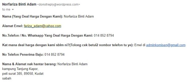 Jadi..kalau nak tahu berapa harga baju yang korang nak order tu, bagitahu detail & nanti saya bagi harga nanti ye.