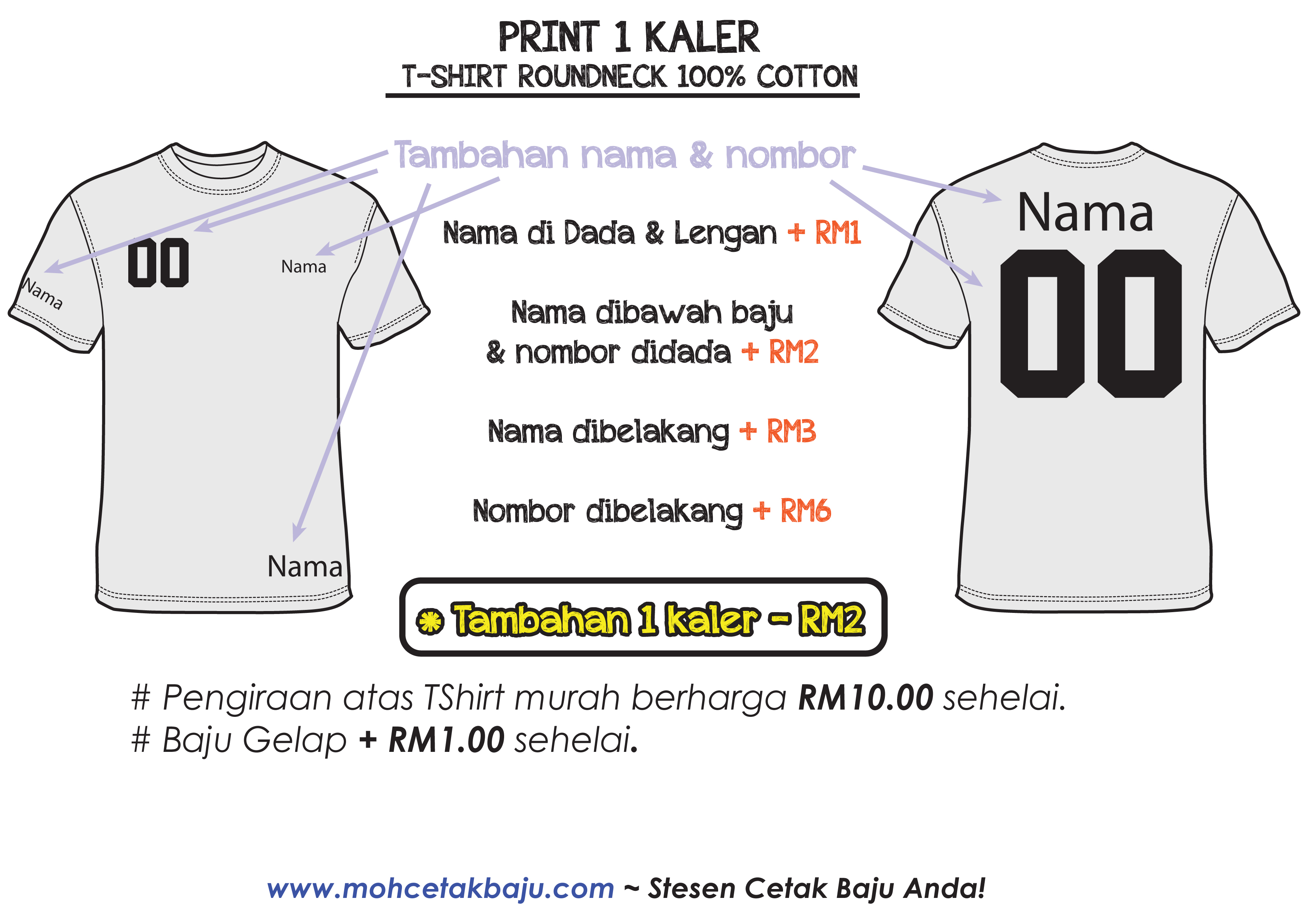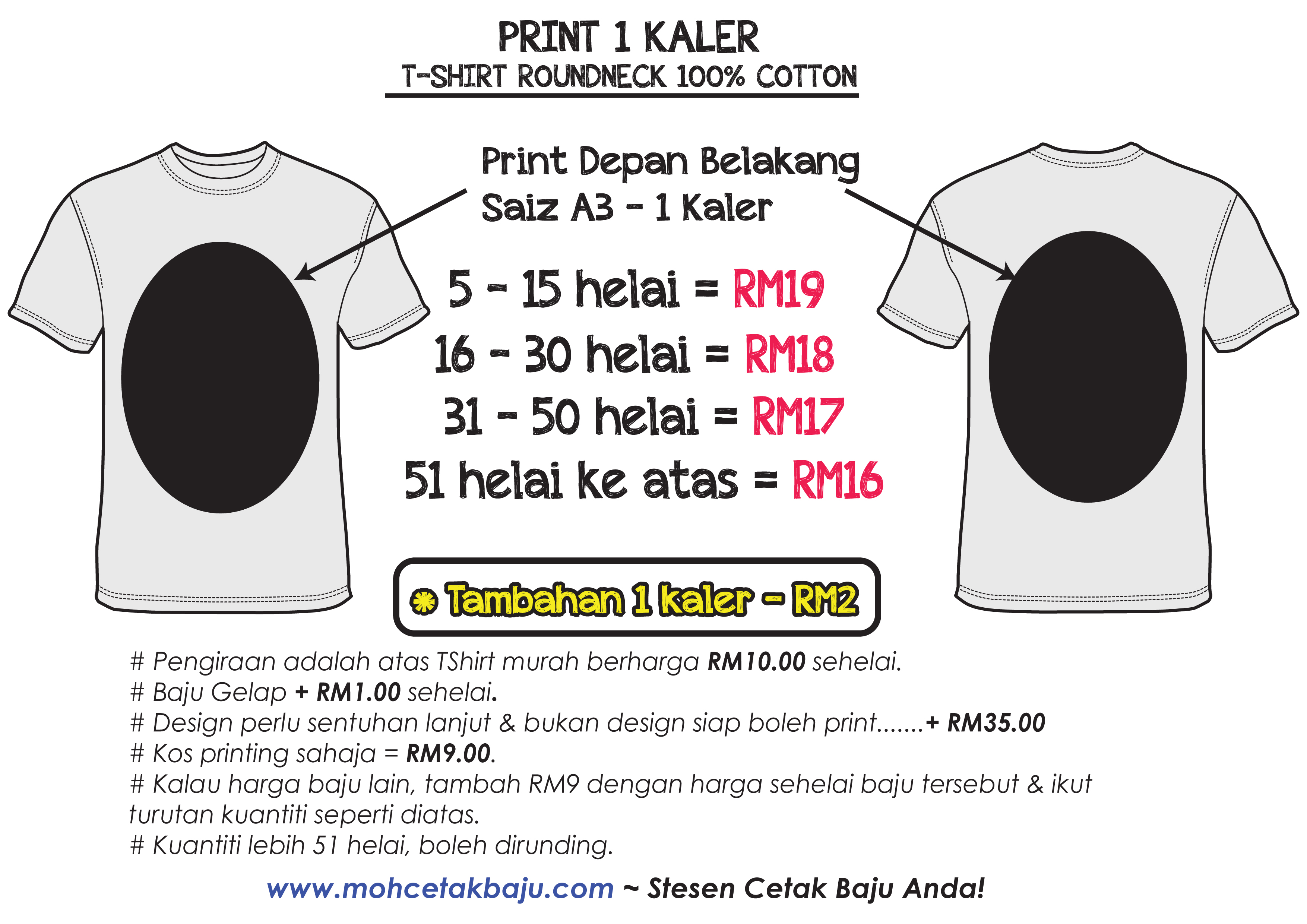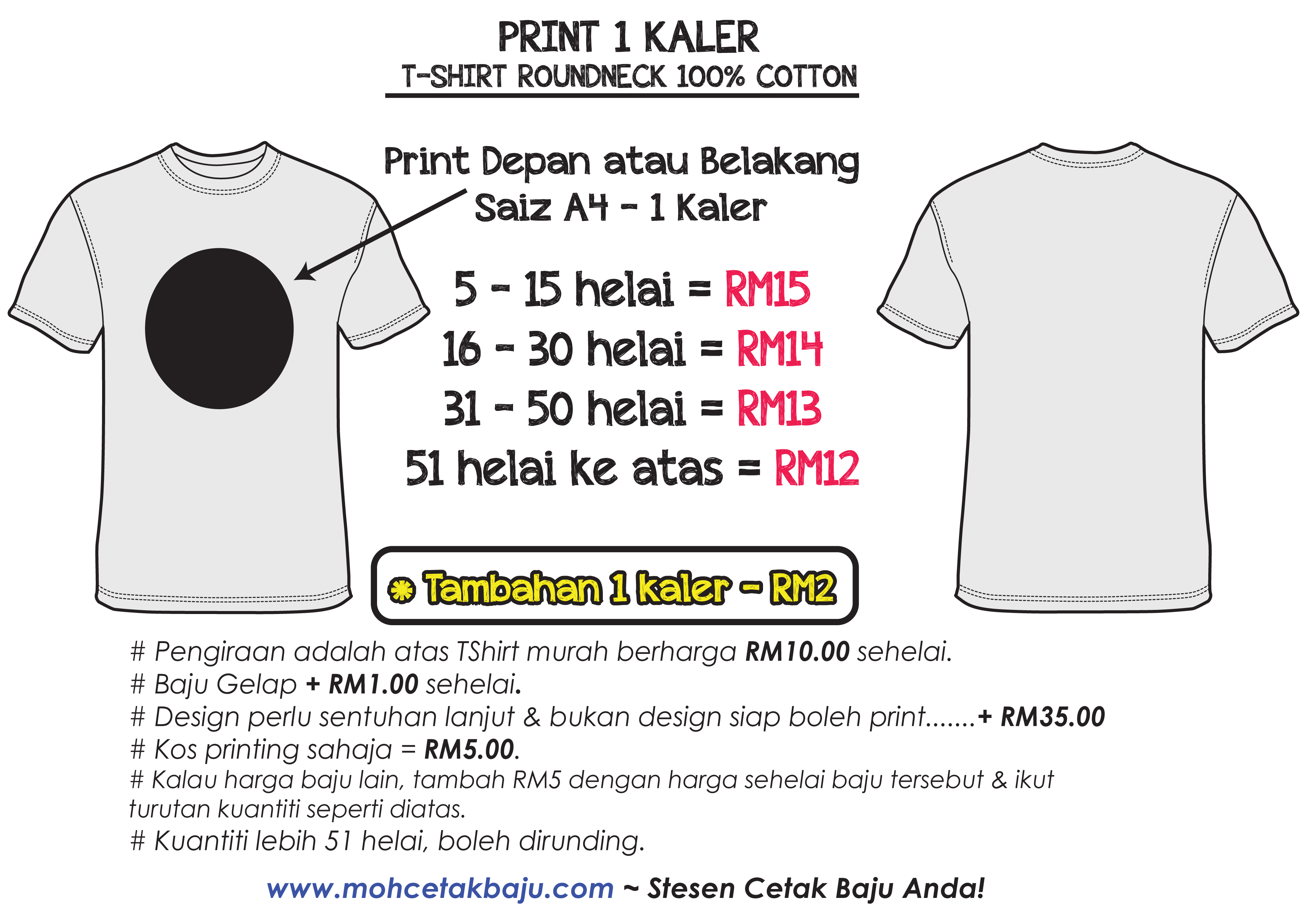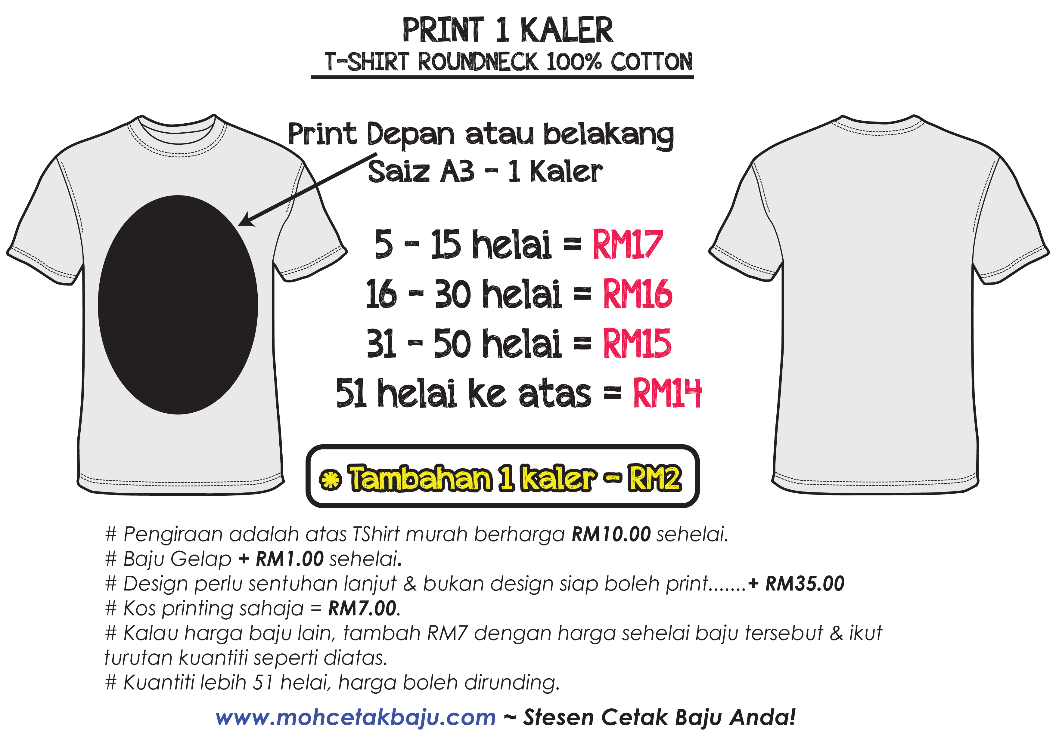 Yang ini standard baju rewang biasa. 1 kaler print depan belakang. Design customer yang sediakan.