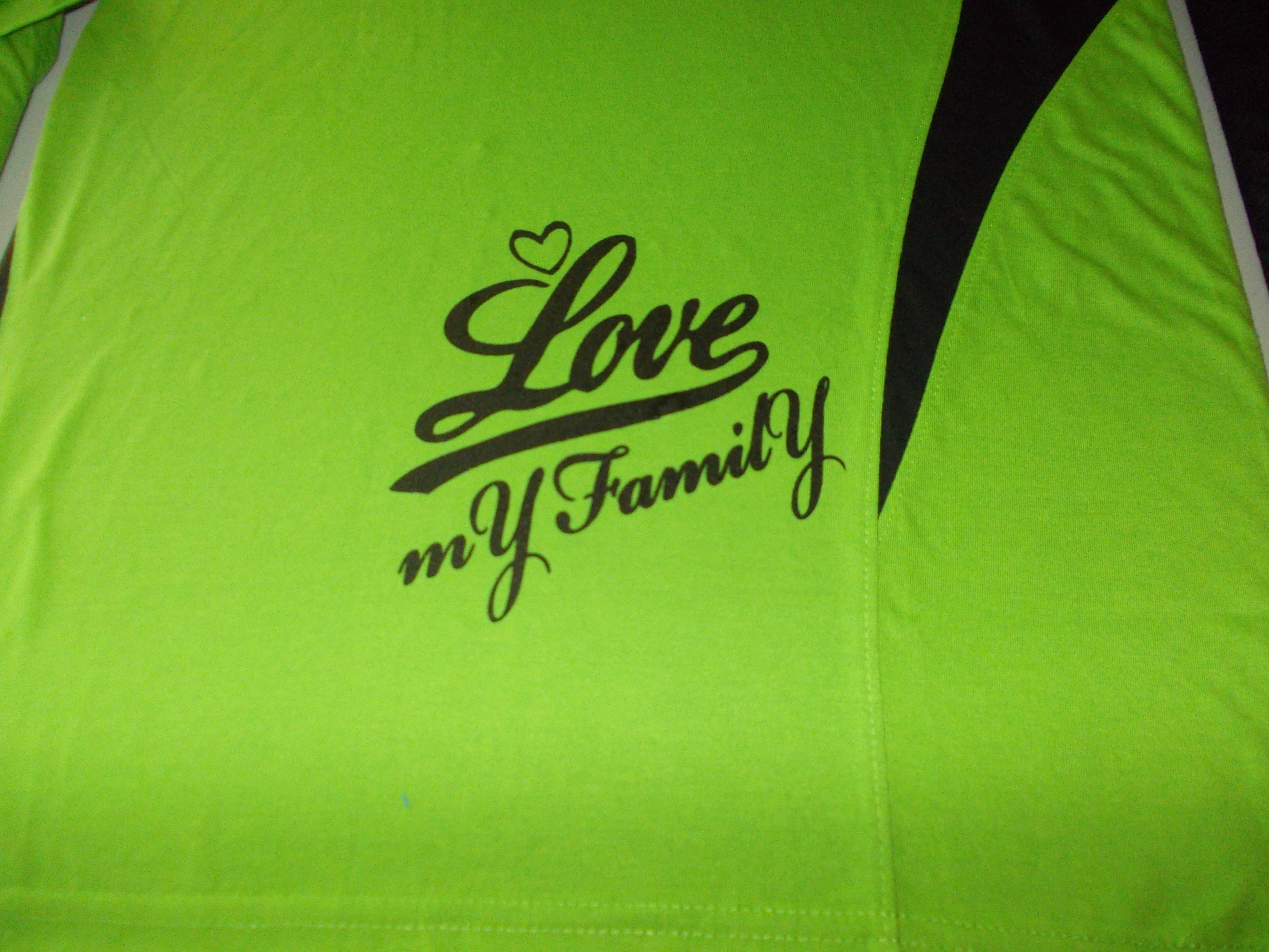 Baju yang dua kat atas nun, tshirt kahwin & yang gambar bawah ni baju family day. Dua2 mudah nak print sebab 1 kaler je. Macam saya ceritakan dalam artikel2 sebelum ni..kadang2 tu, nak touch up design yang korang bagi tu yang ambik masa lama. Kadang2 sampai 2 hari…tapi time printing kejap je. Jeles I kat isteri I sebab dia tukang printing…hehehe. Biasa le, isteri jadi bos….saya jadi kuli je. I love U darling…hehehehe….