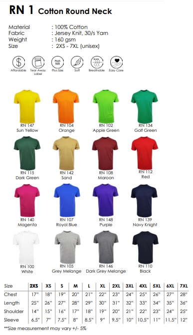 SAIZ 4XL KE 7XL – RM25 (SM) / RM27 (SS)