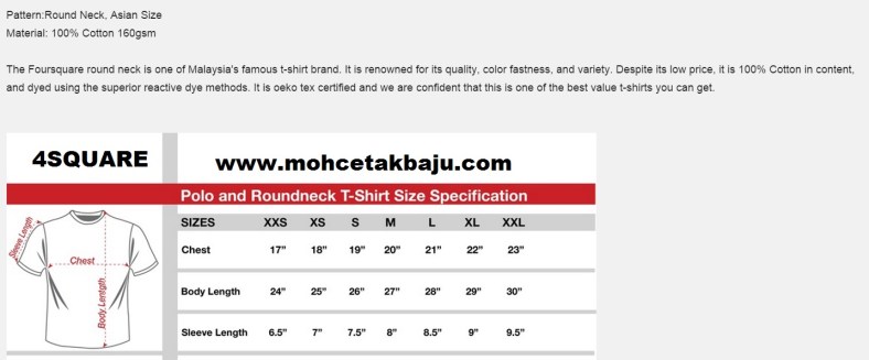 Saiz Baju Dewasa Lengan Pendek 4square