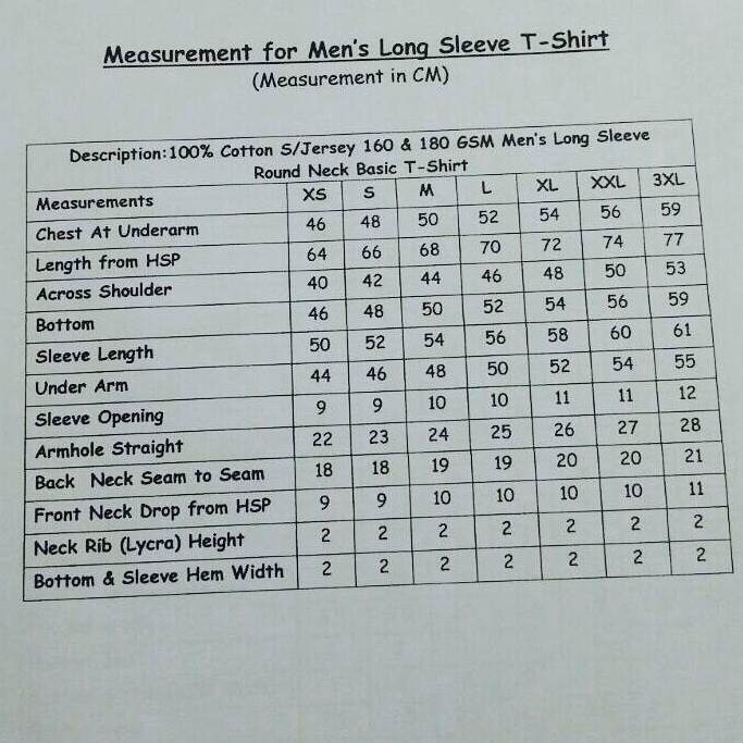 Ukuran Baju Men Long Sleeve TShirt