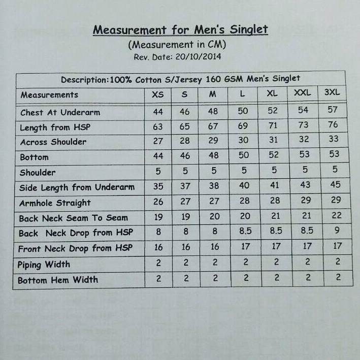 Ukuran Baju Singlet