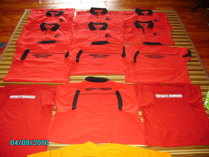 Kebelakangan ni memang padat dengan printing baju group. Minggu lepas, ada group dari satu kolej kat Cyberjaya order. Dalam 100++ lai gak diaorang order. Design dia simple jer….logo besar A4 kat bahagian depan, pastu ada logo skit kat dada. Nasib baik simple. Satu hari jer kitaorang print siap.
