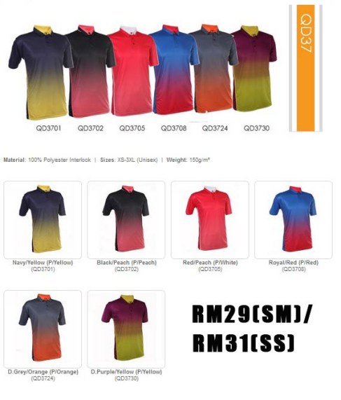 Selain daripada TShirt jenis Raglan…kitaorang juga ada sediakan TShirt sublimation readymade yang korang boleh pilih.