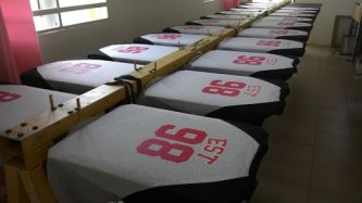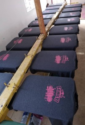 Cer tengok meja printing & cara nak keringkan design tu…kena tegakkan papan baju macam tu, baru boleh cepat kering.