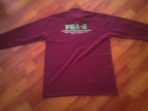 Ni bahagian belakang lak….tulisan tu diaorang tulis PRA U pastu kat bawah lak nama sekolah, warna putih.