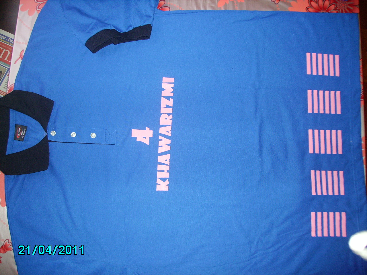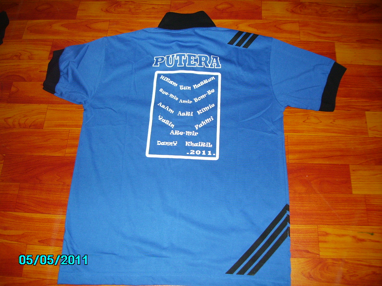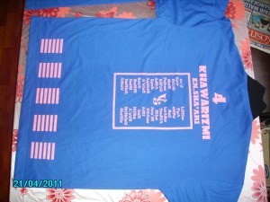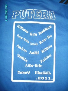 Ni baju Kelas 4 Khawarizmi Sekolah kat Chenderong Balai, Perak. Design semua diaorang buat. Mula2 tu diaorang nak penuh line2 kat bawah tu…alah!ala2 jersi Malaysia gitu tapi tak cantik sebab nampak crowded.